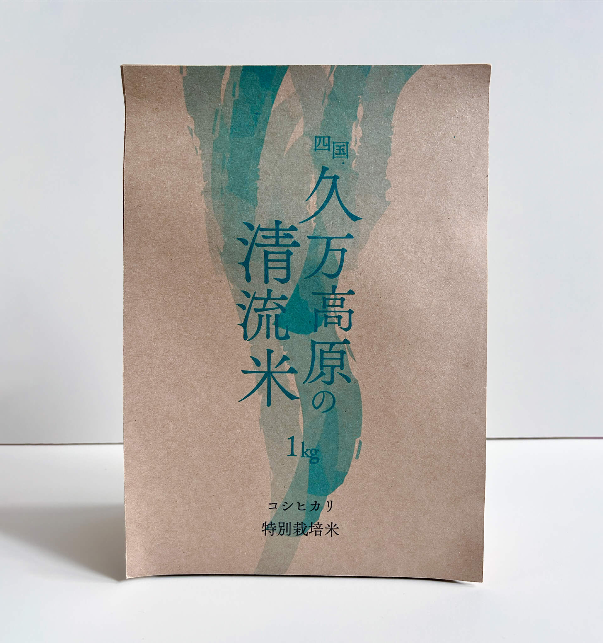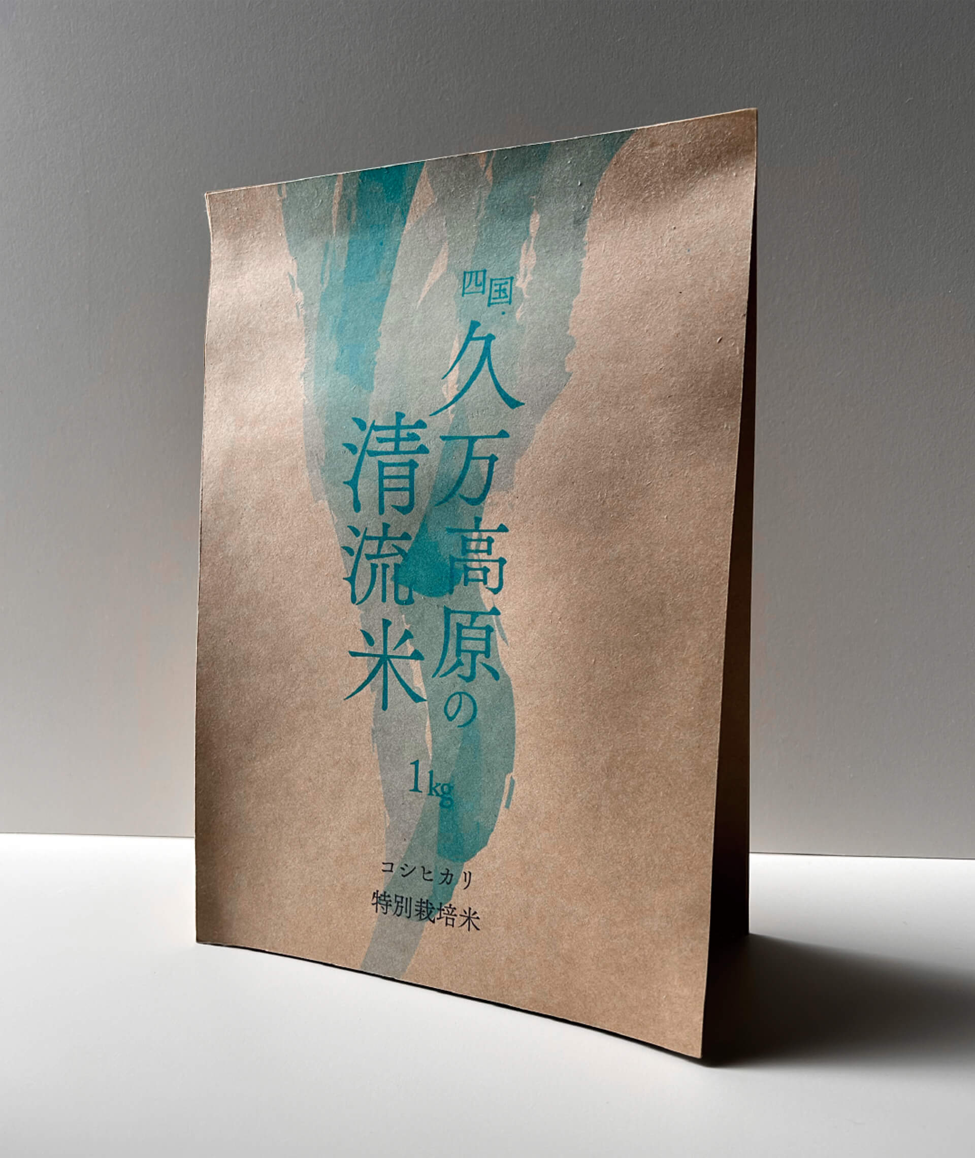 愛媛県久万高原町のオリジナルブランド米「久万高原清流米」のパッケージリデザイン。現行パッケージで不足していた「清流感」をより訴求するリデザインを考案した。石鎚山系のみずみずしい水で育つ米だと伝わるデザインを意識した。