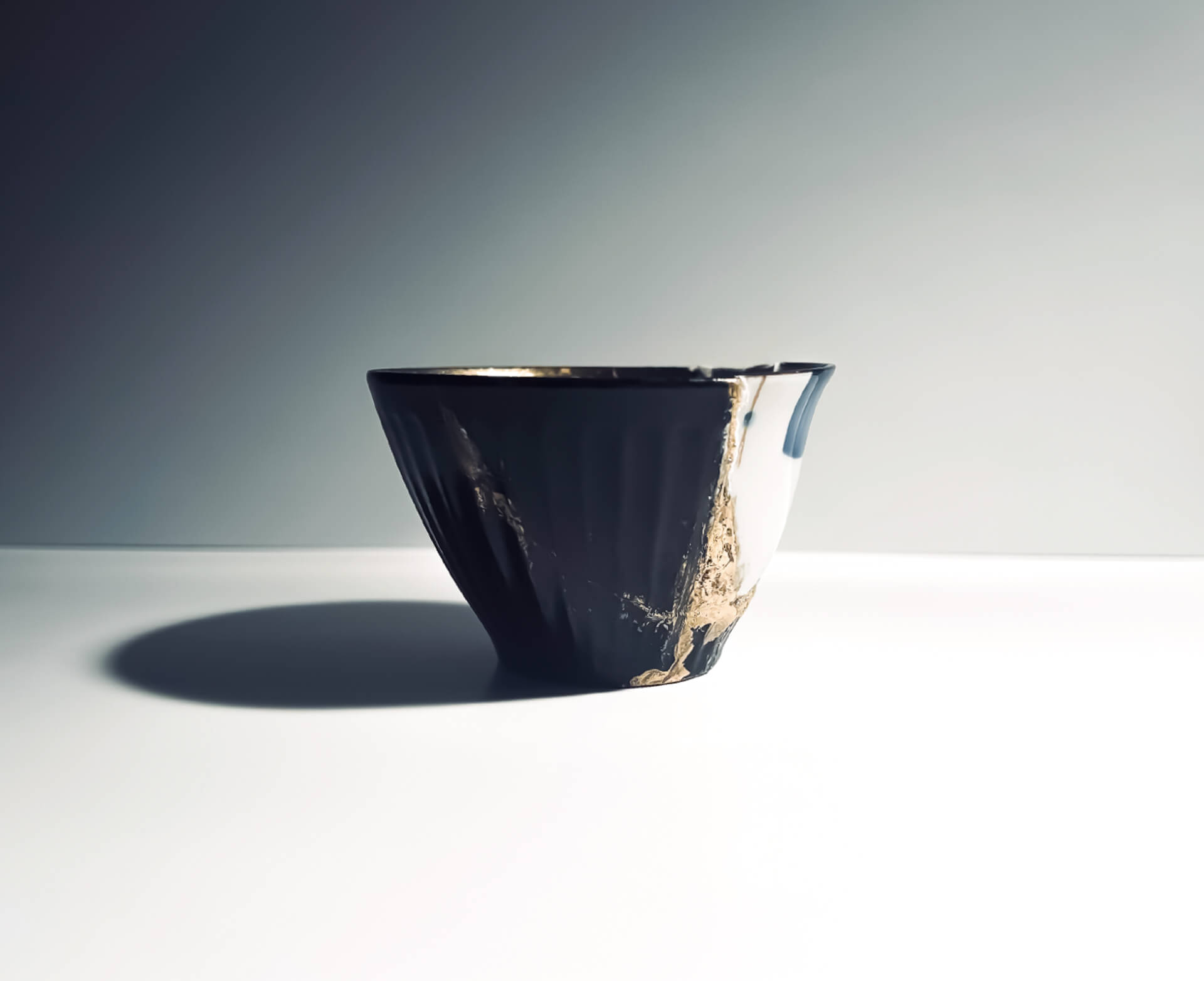 金継ぎの技術で世界を照らしていくという意思を表した金の波紋を、黒で表した地球の球体に広げたデザイン。